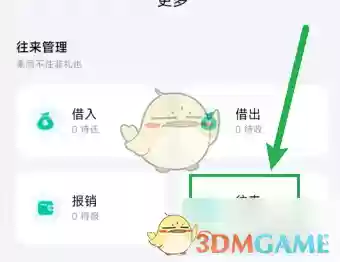 3、进入往来管理页面后,您就能轻松查阅与朋友间的所有账目往来记录