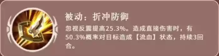 当触发被动时,无视反震的概率会提升约25%。如果魏延对敌人造成直接伤害,有50%的概率对目标施加流血状态。流血状态会使敌人攻击力下降10%,在持续3个回合的流血效果期间,玩家可以配合魏延的其他技能进行连招输出。