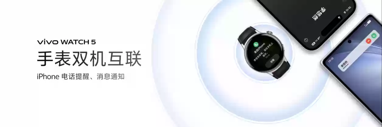 vivo WATCH 5搭载全新BlueOS操作系统,Jovi语音助手升级为更智能的蓝心小V,支持知识问答与任务创建;具备AI智慧视窗功能,各类重要信息一目了然;全新升级的"双机互联"功能,让vivo手机与iPhone双设备间的来电、短信、微信等通知都能在手表端同步显示。