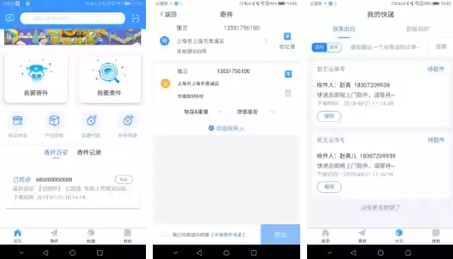 成功登录后,进入中通快递APP填写寄件地址与收件地址信息。