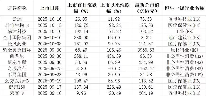 9月底以来,港股新股不仅无一破发,并且多只个股股价实现翻倍。10月10日上市的绿达科技首日暴涨192%,受到私募等各类机构热捧的紫金黄金国际首日也大涨68%,紫金黄金国际后续继续大涨。
