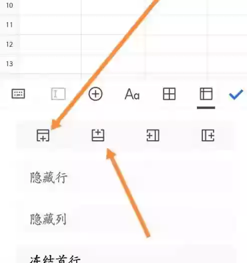 在弹出的菜单中,选择需要添加行的位置,然后点击右下角的图标确认操作。
