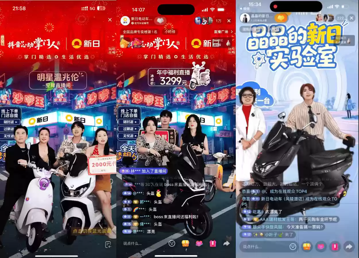 最近,新日电动车通过直播掀起了一股全国购车热潮。在明星助阵和区域高管共同参与的“BOSS价到”系列直播中,消费者能够直接体验到真实的购车优惠与贴心的服务。这种打破传统营销模式的创新实践,不仅创造了单场百万级的成交额和千万级的曝光量,还在电动车行业树立了“流量变销量”的标杆。