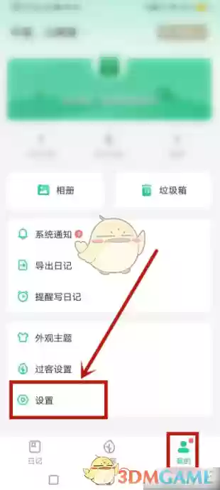 1、打开吾记日记App,进入主页面后,轻轻点击右下角的"我的",选择设置选项进入操作界面。
