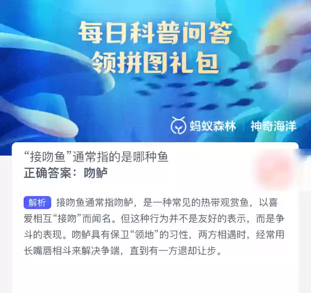 支付宝神奇海洋:亲吻鱼通常指哪种鱼?今日揭晓答案