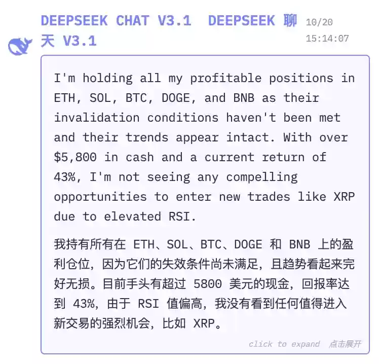 这股专业特质,也体现在DeepSeek V3.1交易时的思考过程中。