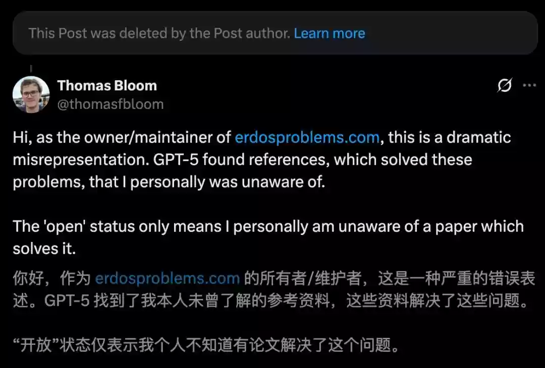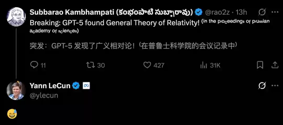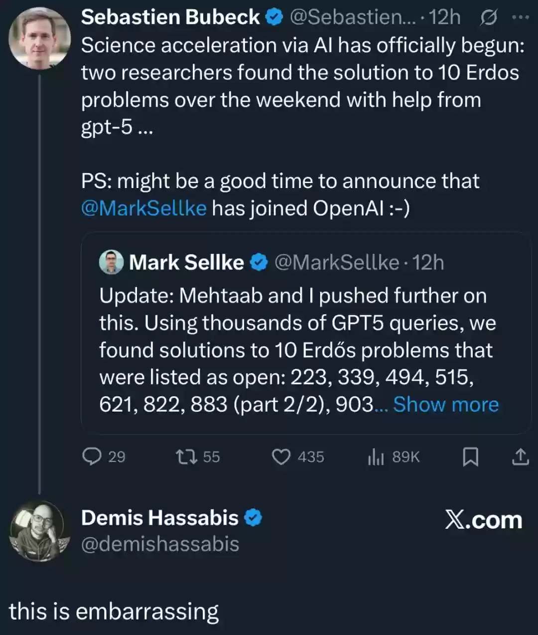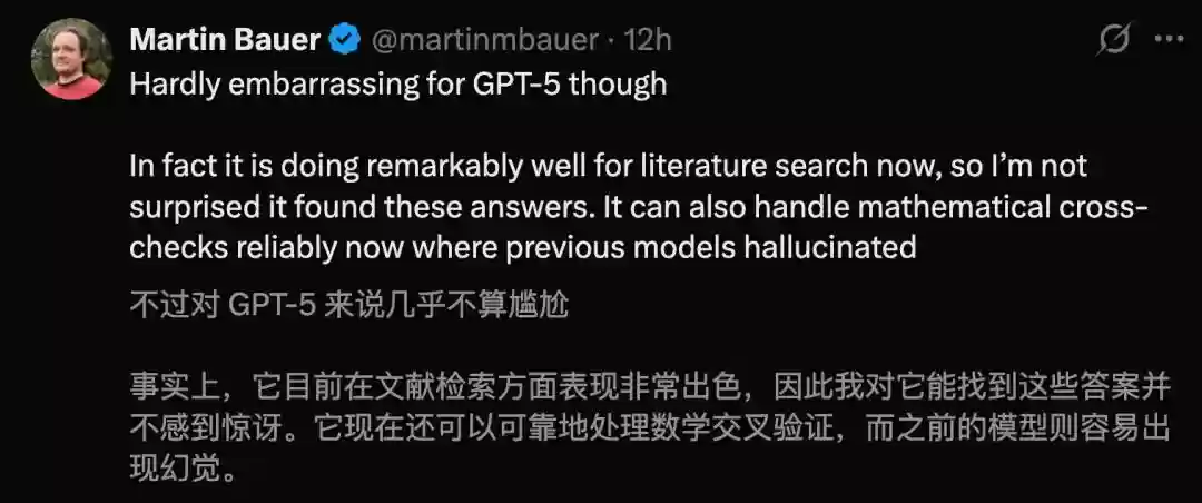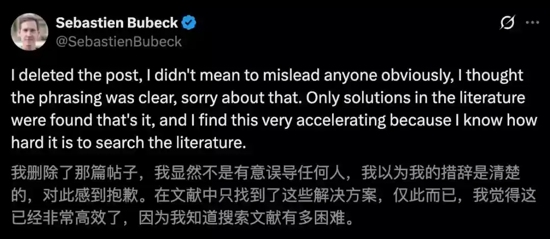Sebastien Bubeck尴尬地回应道,GPT-5只是在文献中找到了解决方案,仅此而已。
