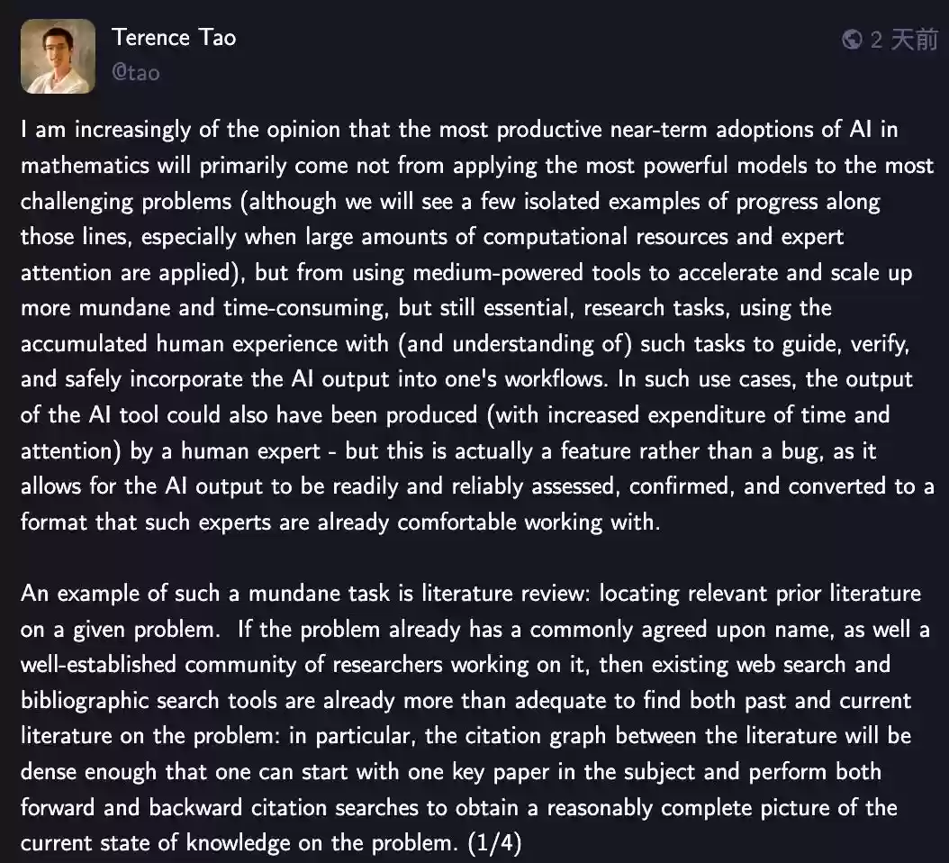 几天前,陶哲轩也曾发文表示,越来越觉得眼下的AI要在数学领域真正发挥作用,关键可能不在于用最牛的模型去攻克最难的题目——