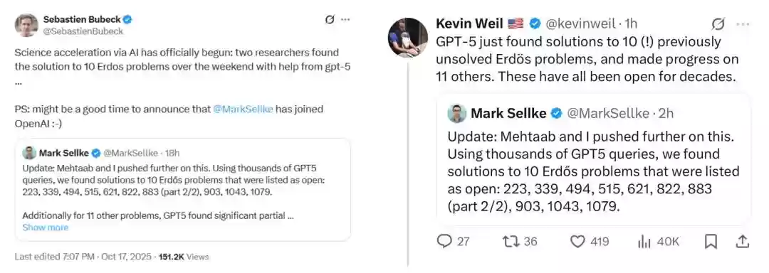 OpenAI科学家Sebastien Bubeck激动地转发了一条消息:两位研究员联袂GPT-5 Pro,仅用了一个周末就解决了10个“百年悬案”——