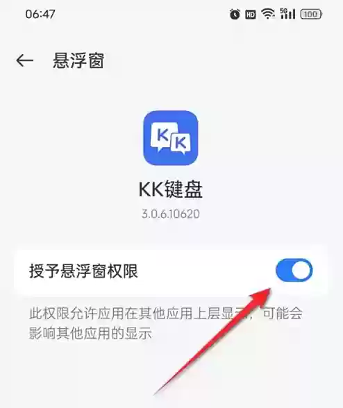 最后找到“授予悬浮窗权限”选项,轻轻向右滑动开关,把它点亮就能启用了。