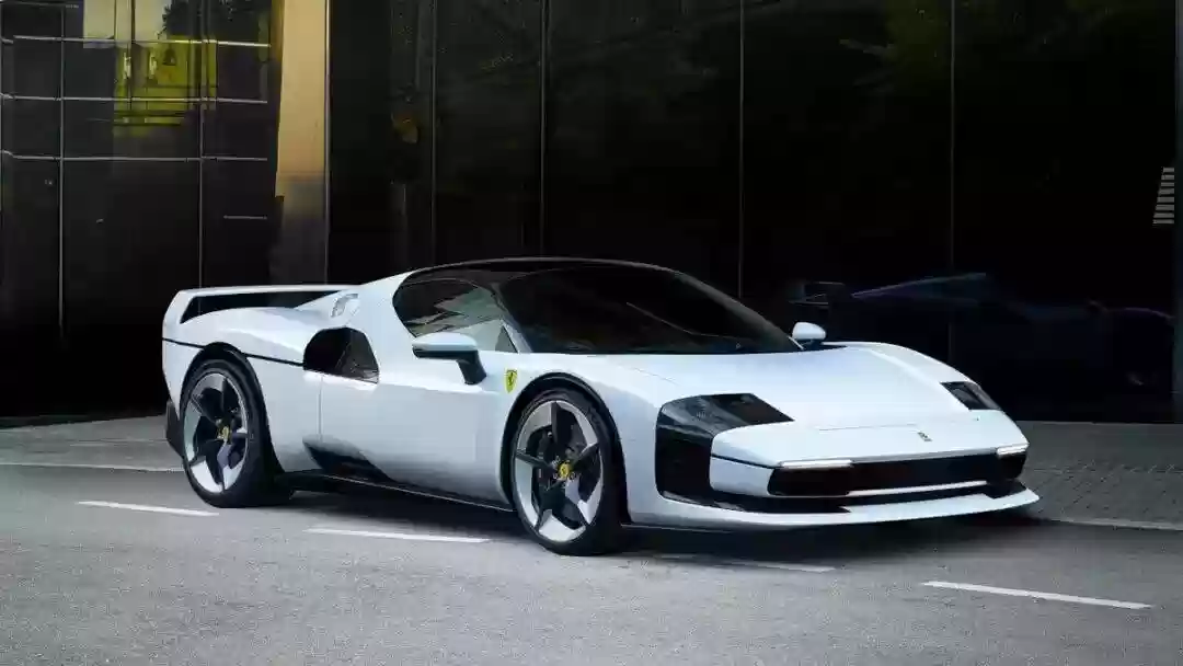 车身侧面,前翼子板末端采用方形轮拱设计,有效优化了底盘气流稳定性。车门及后翼子板上的巨型三角形中冷器进气口,则借鉴了品牌经典的NACA导管设计,既满足了散热需求,又延续了历史传承感。新车未采用传统的“法拉利红”配色,而是选择了专属定制的Bianco SC40珠光质感白色漆面,搭配流畅的车顶线条与圆润的轮拱曲线,在经典与现代之间找到了完美平衡。