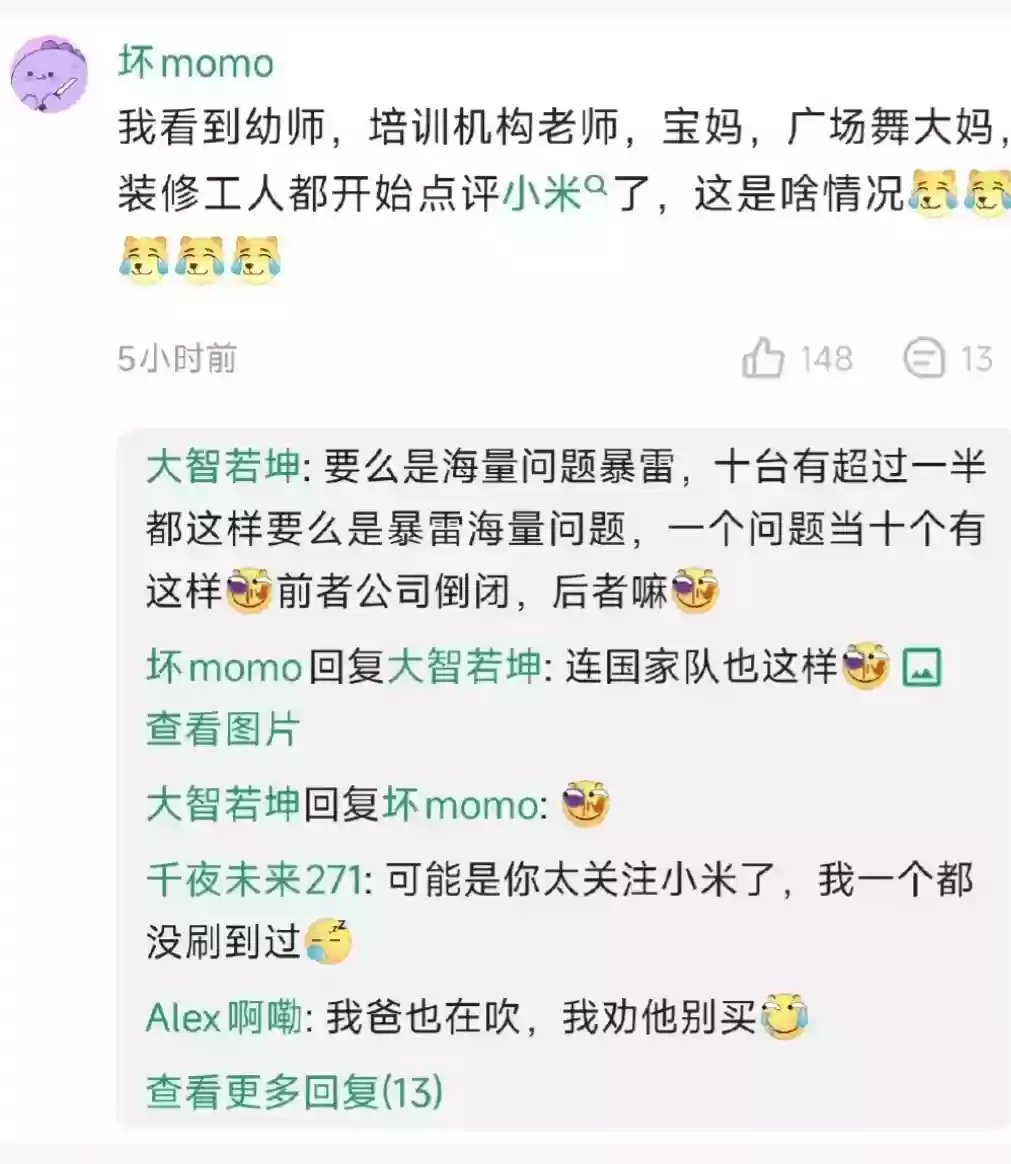 批评者指出,作为依靠流量崛起的科技企业,小米如今遭遇流量反噬实属必然。有观察者发现,参与讨论的网友都能在这场舆论盛宴中分得一杯羹。更有尖锐声音直指产品缺陷,认为门把手等设计问题若持续存在,可能触发大规模召回。这些声音交织成一张密集的质疑网,将小米汽车推至风口浪尖。