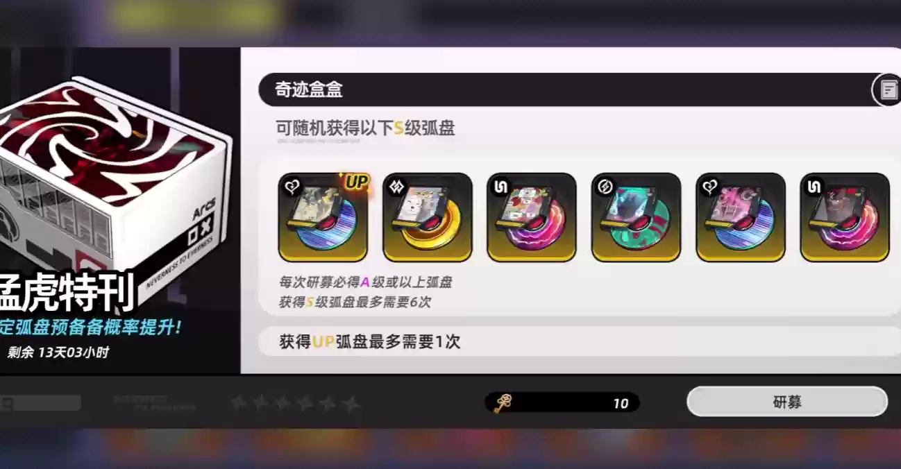 S级角色的基础获取概率为1.88%,A级角色与武器的概率相同,均为22.8%。此外,每进行十次连续抽取都会额外赠送一件A级武器道具。