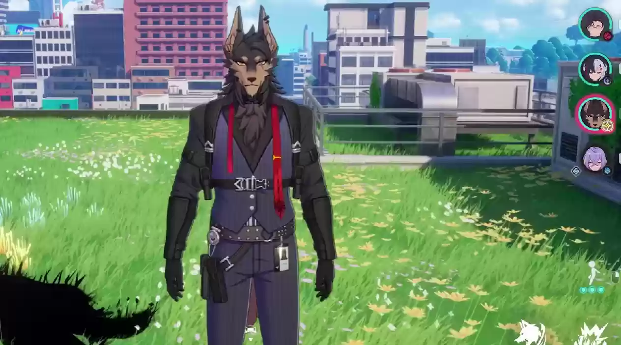兽人角色名为猊,隶属于意向管理属的禁制机动队,担任副队长一职。他长着威严的狼首人身,常身着深蓝色西装,每当施展技能时,便会戴上一副狼头面具,展现出更为强大的战斗姿态。