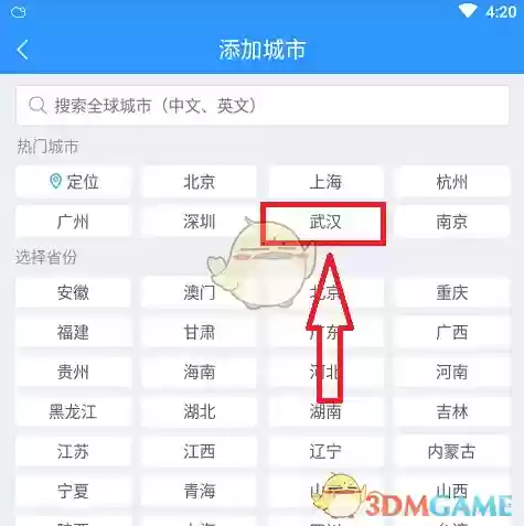 3. 跳转到城市添加界面后,直接点击您需要查看天气的城市。比如小编这里就以武汉为例。