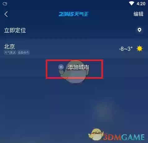 2. 进入功能菜单后,找到并点击位于界面中部的“添加城市”按钮。