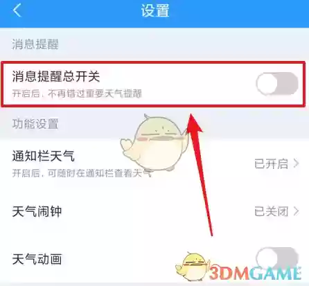 3、进入设置页面后,找到“消息提醒总开关”并将其关闭,这样就完成了全部设置