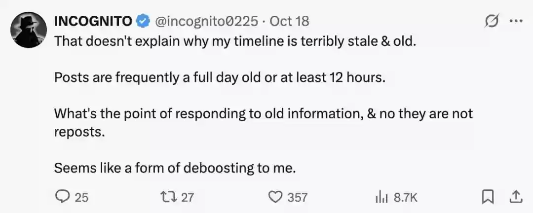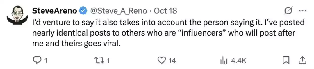 他表示,X的推荐算法并非随意推送或限流,而是像人类一样,根据帖子内容本身判断其是否具有传播价值: