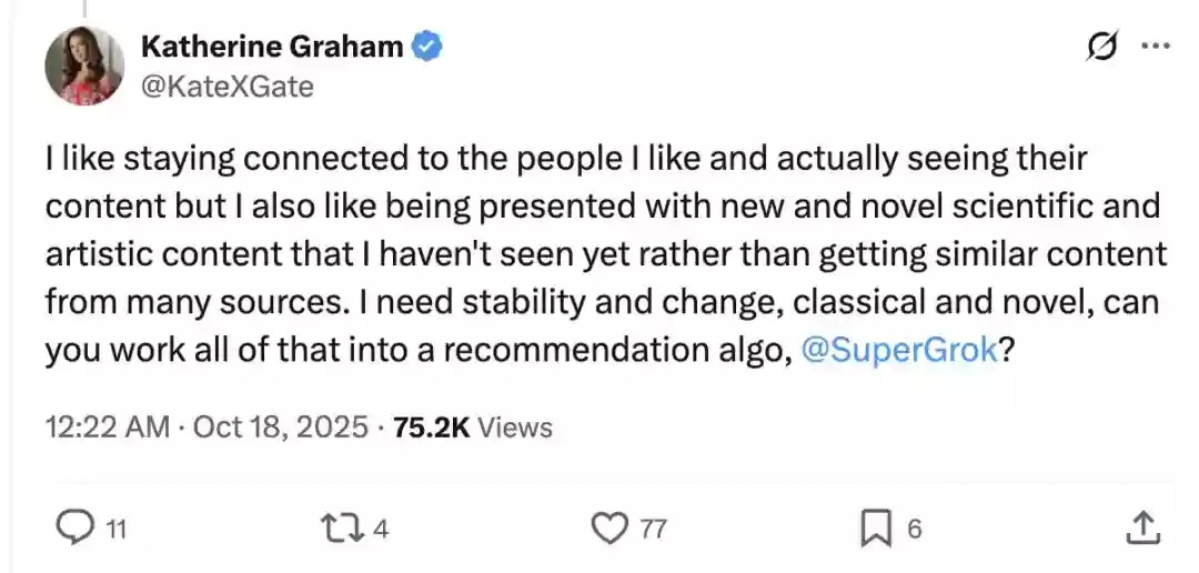值得一提的是,用户还可以向Grok提出个性化请求,动态调整内容推荐策略,让信息流更符合个人偏好。