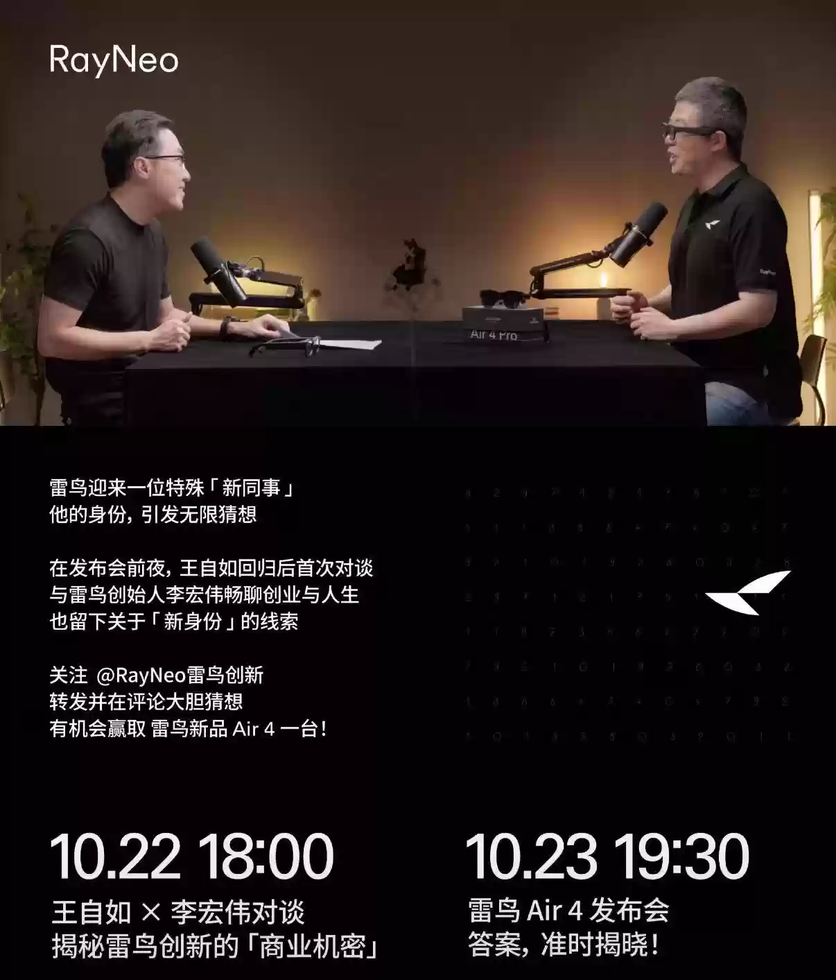 雷鸟创新同时发布了一张宣传海报,透露王自如将与公司创始人展开深度对话。这则消息引发网友热议,有人调侃称王自如这是要效仿罗永浩,涉足访谈类视频内容领域。