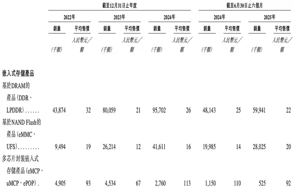 2022年至2024年以及2025年上半年,晶存科技嵌入式存储产品的销量分别达到0.58亿颗、1.11亿颗、1.40亿颗和0.88亿颗。