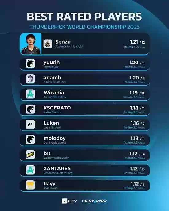 以下是TP世界锦标赛2025选手rating排名TOP10: