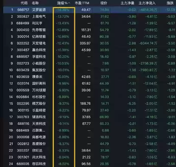 消息一出,A股的锂电池板块应声大跌,指数单日下滑了近7%。超过400只与锂电池相关的概念股中,近9成下跌。