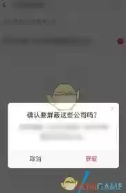 点击公司名称后,会弹出确认屏蔽的提示框。这里再次确认是否要屏蔽该公司,确认无误点击“确定”按钮即可。操作完成后,该公司就成功进入你的屏蔽名单了。