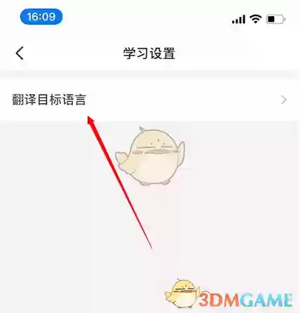 3、进入学习设置页面后,找到并点击“翻译目标语言”导航栏。