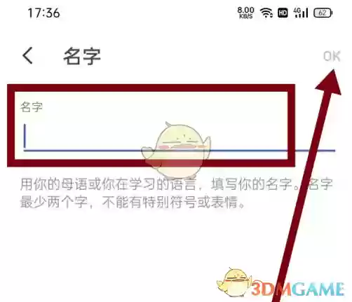 4. 输入你喜欢的新昵称后,别忘了点击右上角的OK保存设置。