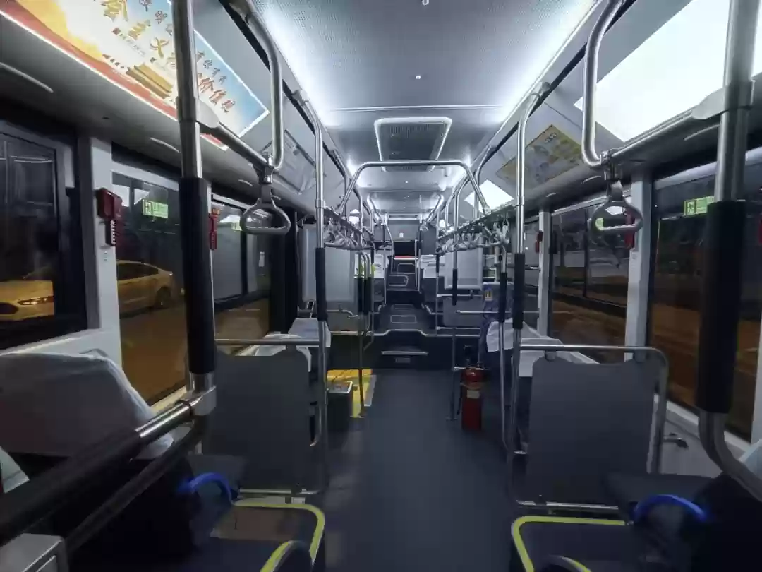 乘车体验的升级体现在细节之中。车辆保留纯电动驱动的静音特性,并配备气囊减震系统,有效过滤路面颠簸,行驶过程平稳安静。针对特殊群体需求,低入口设计让中老年乘客上下车更轻松;轮椅提示按键与驾驶员仪表台联动提醒,踏步翻板、轮椅固定区及底盘侧跪功能(ECAS)进一步简化轮椅乘用流程,体现“人本交通”理念。