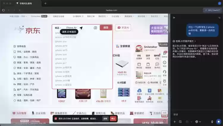在我们的测试中ChatGPT Atlas未能完成电商比价任务
