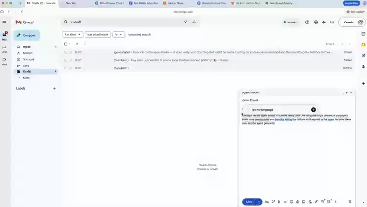 与此类似的是Cursor Chat功能。在网页的任意文本框中,用户只需用鼠标选中文字,就能直接调用ChatGPT进行行内编辑。比如在Gmail撰写邮件时,选中一段话,让ChatGPT“帮我整理语言”或“改为更正式的措辞”,修改后的文本会直接替换原文。这确实省去了在多个标签页间来回切换的麻烦。