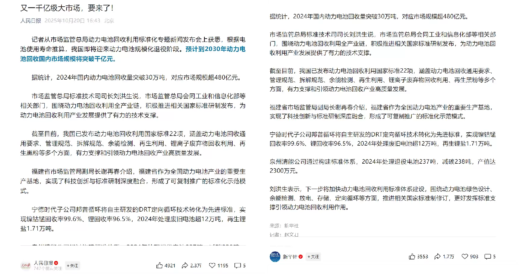 下一步,市场监管总局将联合相关部门加快推进动力电池回收利用标准化技术委员会成立,完善标准体系建设。这条循环经济之路不仅关乎商业价值,更承载着推动全球碳中和发展目标的时代使命。