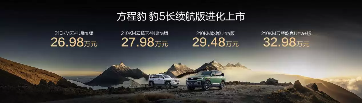方程豹汽车最新发布了两款重磅车型——豹5长续航版与豹8大五座版,进一步深化其在电动越野市场的战略布局。其中,豹5长续航版定价区间为26.98万至32.98万元,豹8大五座版则定位于37.98万至40.78万元。伴随品牌整体销量即将突破20万台、豹5累计销量跨过10万台大关,方程豹以“人人可野·拥豹新生活”为核心主张,致力于通过硬核科技推动越野场景的智能化普及。