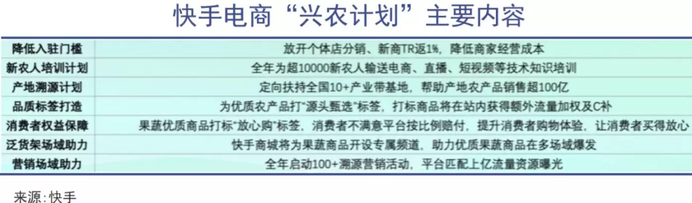 电商平台也开展了一系列助农行动,比如抖音为生鲜品类提供免佣政策,并以流量扶持、返还推广费等方式降低创业门槛;拼多多通过「农云行动」计划带动数千农产品商家参与数字经济;快手推出「兴农计划」,为开店、流量与产品供应等多个环节给予支持等等。