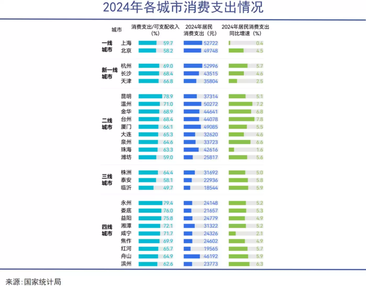 今年上半年,北京餐饮住宿业利润总额降幅达67%,上海虽实现同比增长,但整体利润仍不及往年水平。与此同时,北上广深的房价较2024年高点普遍回落超30%。相比之下,县城虽然规模有限,但正处于增长和产业升级阶段。