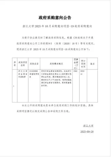 政府采购意向公告。图/浙江大学采购网