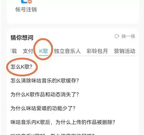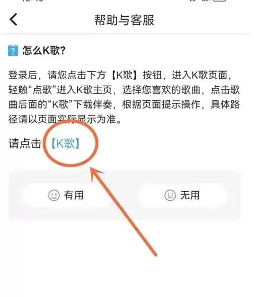 在客服中心页面,直接点击"怎么K歌"的常见问题条目。