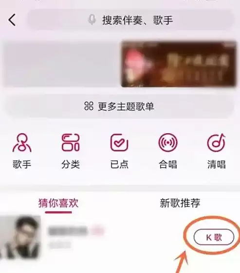 进入操作指引页面后,找到并点击醒目的"K歌"功能入口标识。