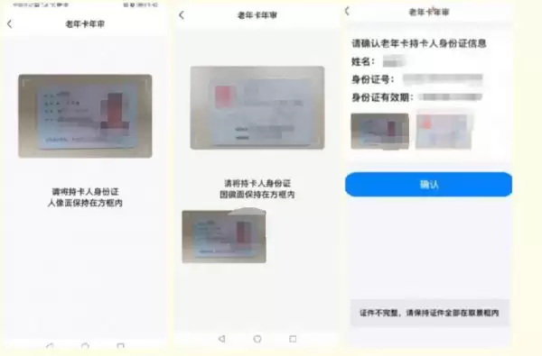 6. 按照指引将身份证人像面和国徽面完整置于取景框内,仔细核对系统显示的姓名、身份证号及证件有效期等信息。