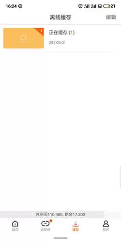2、进入离线缓存页面后,这里会清晰展示正在下载和已完成缓存的视频列表。