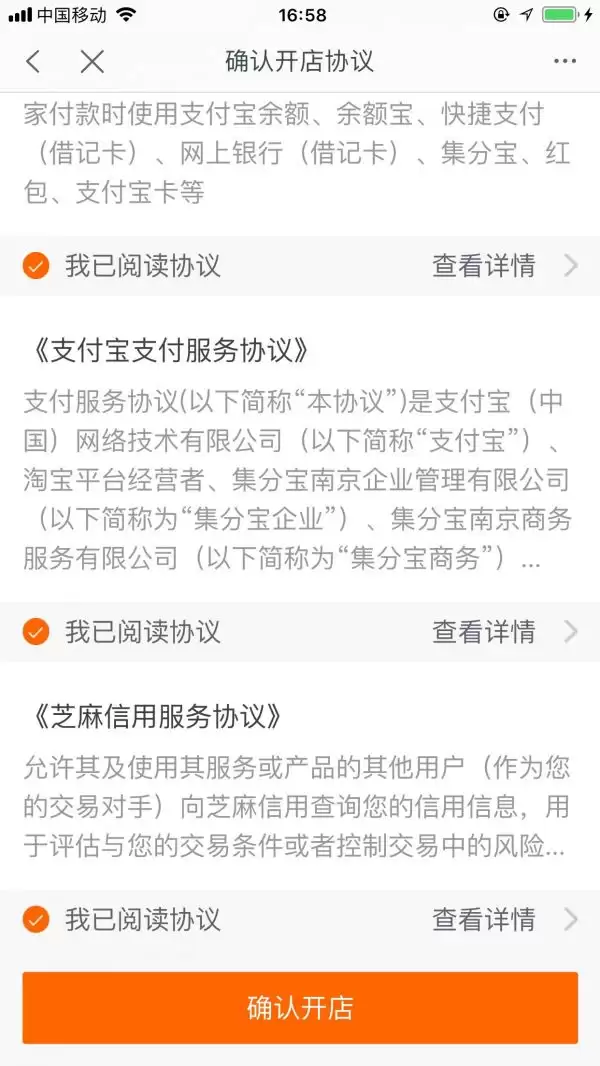第四步:等待开店认证审核通过后,仔细阅读并确认开店协议