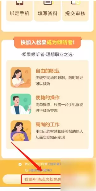 进入申请页面后,点击醒目的【我要申请成为松果倾听者】选项。