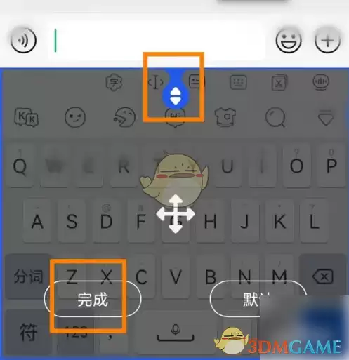 3、通过拖动高度按钮实时预览键盘尺寸变化,最后点击"完成"选项即可保存个性化设置。