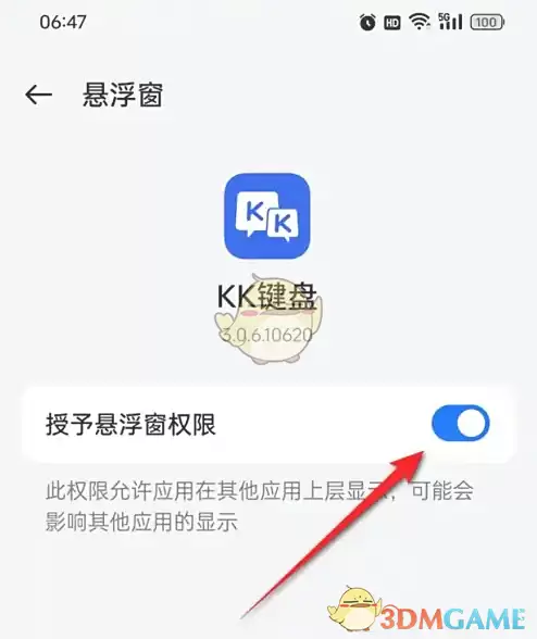 5、找到"授予悬浮窗权限"选项,将旁边的滑块切换至开启状态即可完成设置。