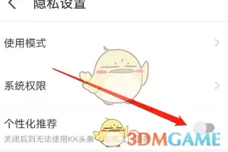 要关闭KK键盘的个性化推荐功能,首先打开KK键盘APP,点击右下角的"我的"进入个人主页,接着点击右上角的设置图标进入菜单,找到"隐私设置"选项并点击进入,最后在隐私设置页面中关闭"个性化推荐"功能即可。