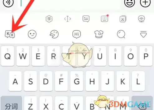 1. 在手机输入界面调出KK键盘,点击左上角的"KK"功能图标。