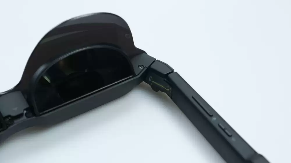 机身边框接口设计简洁,通过配套数据线即可连接支持DP输出的手机实现即插即用,无需复杂激活流程。镜身边侧的功能按键布局紧凑,操作时不会误触,整体设计将实用主义贯穿始终,没有多余装饰却处处贴合使用需求。