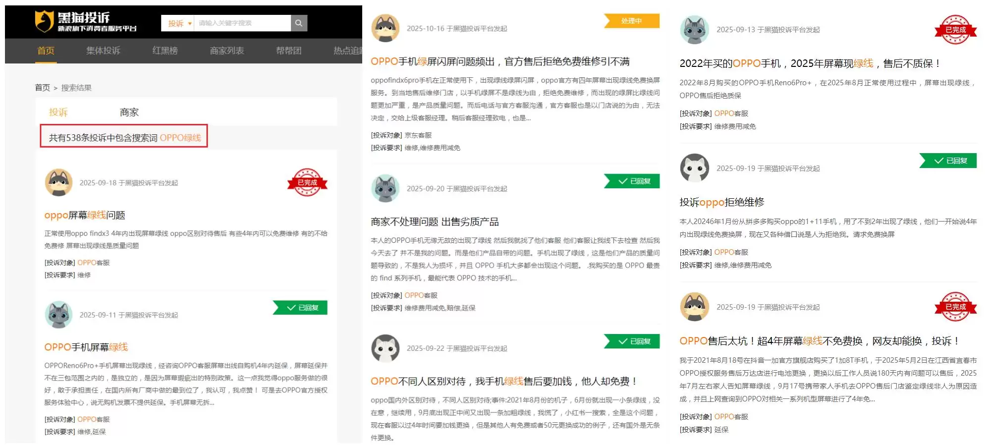 譬如新浪旗下消费者服务平台黑猫投诉显示有"538条投诉中包含OPPO绿线",小红书平台按OPPO绿线检索更是满屏都是相关的用户吐槽笔记......兴许真的不能怨这些媒体监督的"积极性"太高。